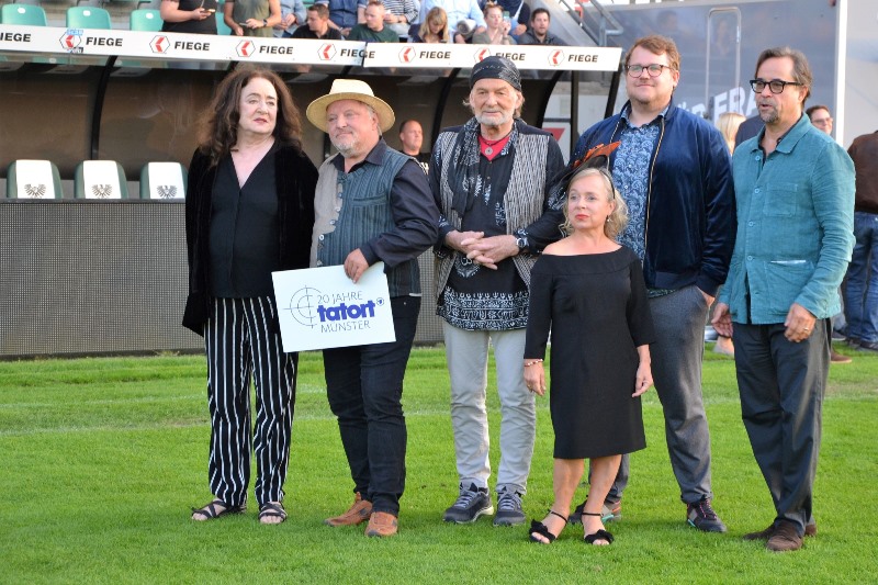 …denn die waren bei der gestrigen Premiere von „Ein Freund, ein guter Freund“ im Stadion des SC Preußen Münster „Open Air“ dabei. Ein sicherlich ungewöhnlicher Ort, aber nach all den Einschränkungen, die uns Corona beschert hat, eine tolle Lösung aller Verantwortlichen. Die treue Münsteraner „Tatort“-Anhängerschaft musste knapp drei Jahre auf eine öffentliche Premiere warten. Nun aber kamen sie alle… die ganz Treuen, die eine der begehrten Karten ergattert hatten, die Presse, die in Scharen ins Stadion am Berg Fidel pilgerte und natürlich die komplette „Tatort“-Familie mit Kommissar Thiel (Axel Prahl), Rechtsmediziner Dr. Dr. Boerne (Jan Josef Liefers), „Alberich“ (Christine Urspruch), „Vaddern“ (Claus Dieter Clausnitzer), Staatsanwältin Klemm (Mechthild Großmann) und Mikro Schrader (Björn Meyer). Den „offiziellen Anstrich“ verliehen zudem WDR-Programmdirektor Jörg Schönenborn und Münsters Oberbürgermeister Markus Lewe sowie viele „Tatort“-Verantwortliche, die im Hintergrund zum Erfolg dieses Formats beitragen.
