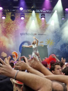 Isi Glück, eine der zurzeit angesagtesten Sängerinnen, hatte die Ehre das Event zu starten und brachte die Menge direkt in den Partymodus. Frenzy machte da weiter, wo Isi aufgehört hat, und sorgte mit ihren Songs, u. a. „Ameise“, dass die Stimmung weiterhin super war. Mia Weber sorgte mit Schlagersongs für einige Runden Discofox.