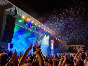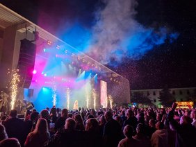 Die 90er durften natürlich auch nicht fehlen, und Oli P hat einige Flugzeuge im Bauch verteilt. Rumbombe hat Hemer danach in "Rumbombe, Kreis Malelele" umgetauft und mit dem Ortsschild einen Fan glücklich gemacht. Anna-Maria Zimmermann übernahm danach die Bühne. Auch sie zeigte einen super Auftritt und zog Hemer in ihren Bann. Ihr folgte Samu, der am DJ Pult die Menge zum Tanzen brachte, u.a. auch mit dem seit der EM beliebten "links rechts". Specktakel zeigten, mit einem Bauchtanz, weshalb sie den Namen tragen, aber heizten natürlich auch mit ihren Hits ein.