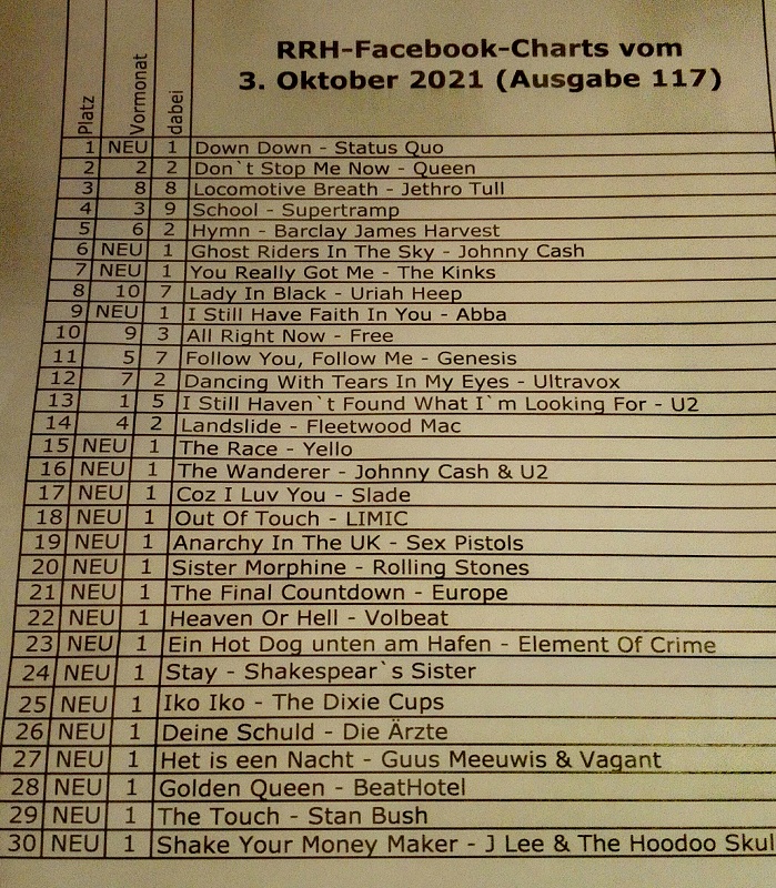 Abstimmung zur 118. Ausgabe der RRH-Facebook-Charts ist gestartet. Klickt für Eure Favoriten!