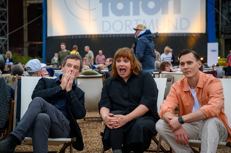 Die 1000 Plätze waren im Nu ausverkauft, hieß es – und das ist nicht verwunderlich. Insbesondere Kommissar Faber, dargestellt von Jörg Hartmann, wird vom Publikum gehasst oder aber geliebt. Und die, die ihn lieben, konnte nicht einmal die draußen aufziehende Kühle davon abhalten, sich diese (wieder einmal) sehr berührende und dichte Episode anzusehen. Bei den Dortmundern ist es die besondere horizontale Erzählweise, die diverse Handlungsstränge über die Folgen hinweg weiterführt, die die Zuschauer in ihren Bann zieht. Der eigentliche Fall wird dabei beinahe zum Nebenschauplatz.