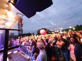 Inzwischen hatten sich rund 1.000 Anwesende eingefunden und waren sofort auf Temperatur. Alle – auch die Kapelle – waren sichtlich froh, sich nach den letzten beiden Jahren wieder zu haben. Sänger Guido „Opa“ Scholz brachte es auf den Punkt: „Ich bin so froh, dass wir heute wieder mit Euch allen feiern können!“