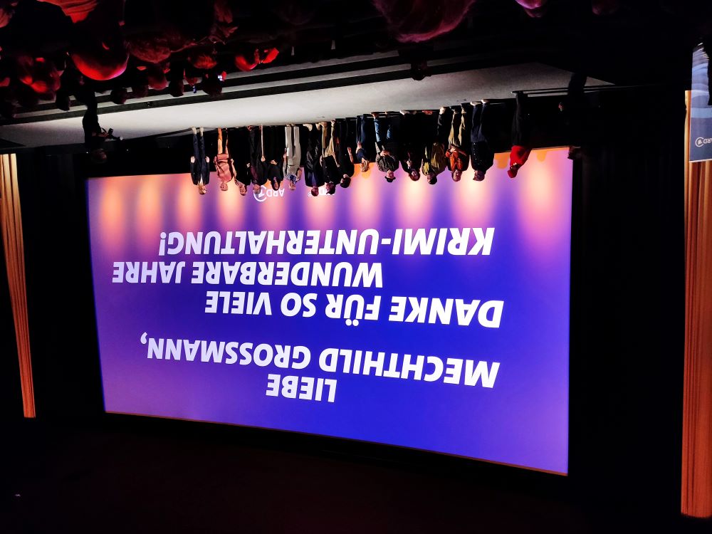 Mechthild Großmann indes scheint den Abend des Abschieds von den meisten am besten zu verkraften… gewohnt resolut, schlagkräftig, gelassen und auf den Punkt. Natürlich sind 23 Jahre eine lange Zeit, aber sie und der „Tatort“ habe sie im Jahr vier bis acht Tage an reiner Dreharbeit gekostet. „Den Rest habe ich was anderes gemacht“, so die Schauspielerin, die nach diesem Ausstieg natürlich weiterhin u.a. am Theater arbeiten wird. Zu ihren Plänen verrät sie: „Nächstes Jahr habe ich sehr schöne Sachen vor: Mit dem Rundfunk-Sinfonieorchester Berlin unter der Leitung von Vladimir Jurowski werde ich „Der Schneesturm“ von Puschkin lesen. Mehrere Auftritte mit der Lautten Compagney, mit fünf wunderbaren Musikern, die spanische Musik aus dem 17. Jahrhundert spielen, und mein Text handelt von Don Quichotte. Mit Gottlieb Wallisch – einem großartigen Pianisten, der Musik der 20er Jahre spielt – zu Texten von Menschen dieser Zeit. In Dresden werde ich Alan Bennett in der Komödie lesen, und, und, und. Ich freue mich auf ganz viel Literatur und Theater. „Das Vermächtnis“ im Schauspielhaus Münster wird es im Februar und März auch geben.“