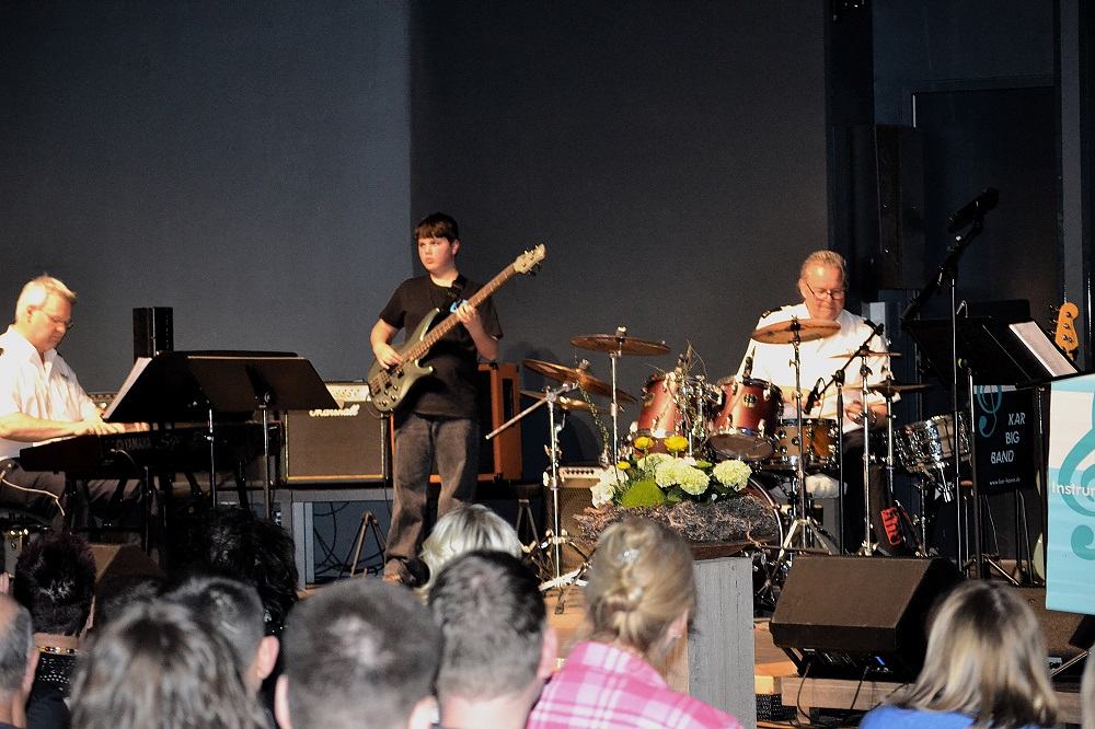 Mit dem Auftritt der KAR-Big Band gab es dann noch einen echten musikalischen Leckerbissen vor der Pause. Mit "Shut Up And Dance", "I`m Still Standing", "Happy", "Don`t Stop Believin" und "Sucker" zeigte die Band, die aus aktiven und ehemaligen Schülerinnen und Schülern, aber auch Lehrkräften besteht, ihr Können und schickte dann die Anwesenden mit einer kraftvollen Version von Metallicas "Enter Sandman" in die kurze Pause.