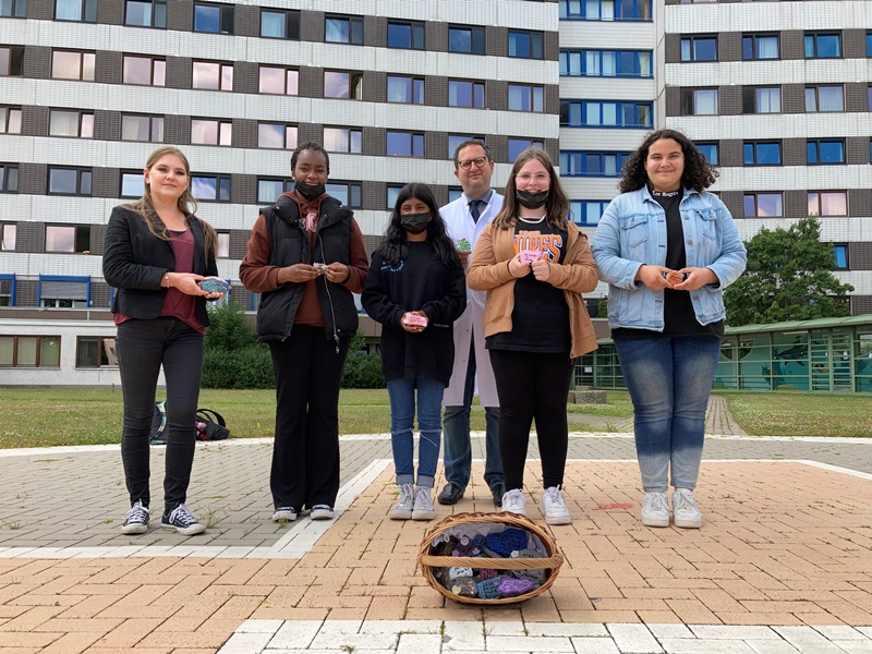 Chefarzt Prof. Alexander Baraniskin, der die schön gestalteten Exemplare stellvertretend entgegennahm, zeigte sich begeistert: „Es ist für unsere Patienten ein tolles Zeichen, dass junge Menschen Anteil an ihrem Schicksal nehmen. Das gibt Kraft und Zuversicht, die dringend gebraucht wird.“
